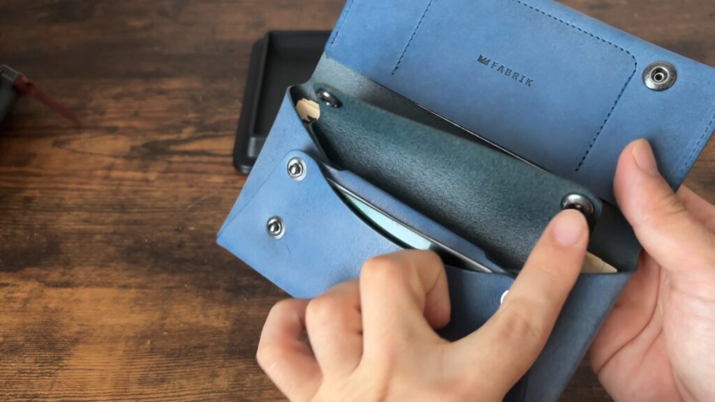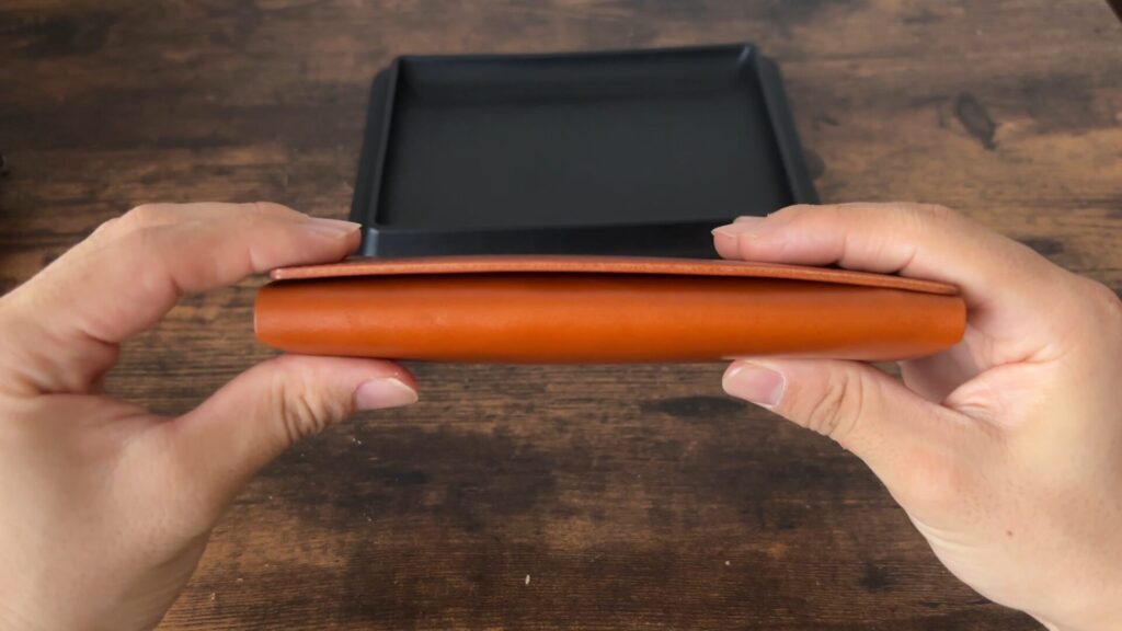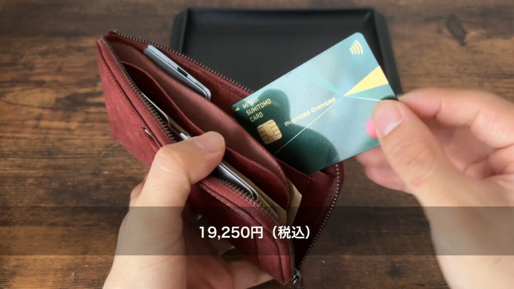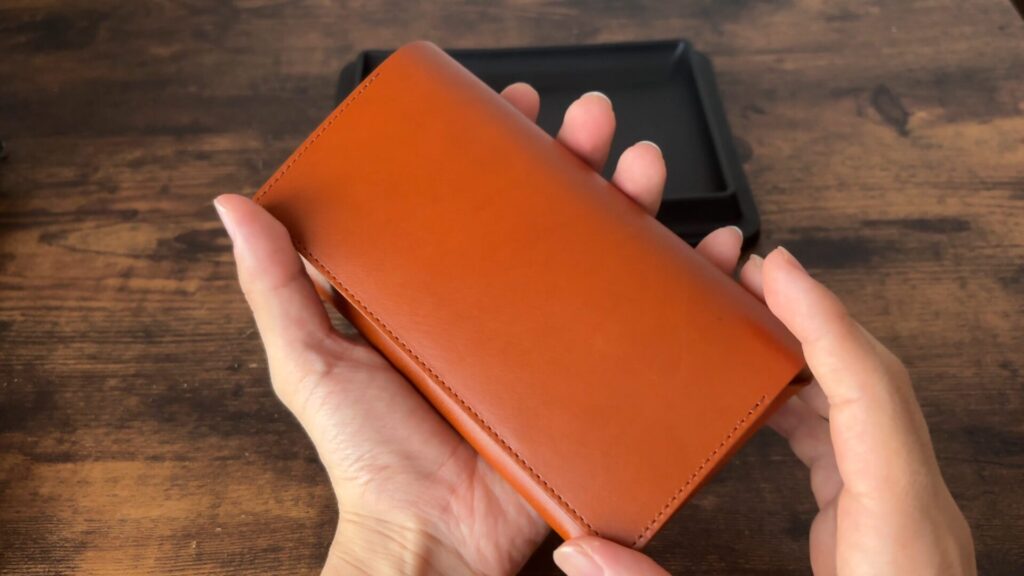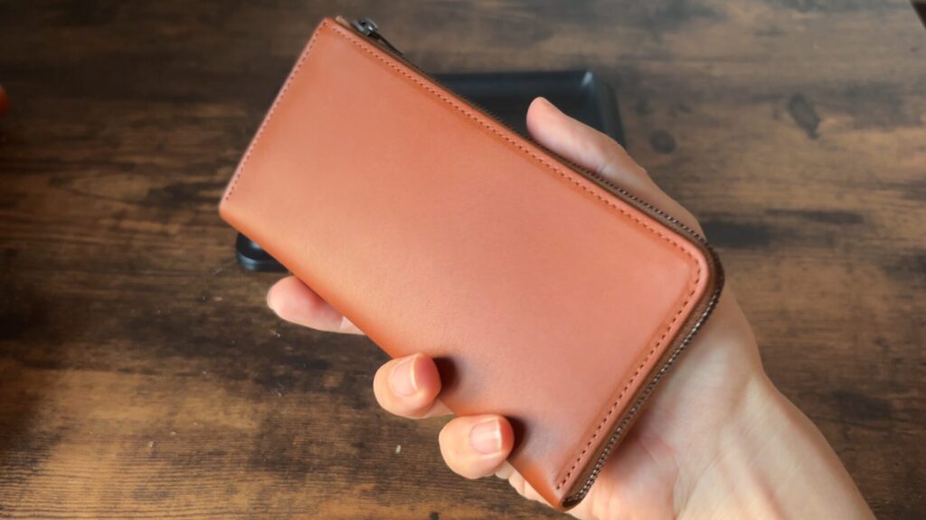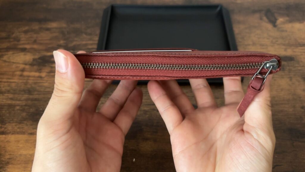 iPhone Pro Maxと同等サイズの極小設計。厚みわずか1.2cmは今回紹介する5つの中で最も薄く、最もコンパクトな長財布です。