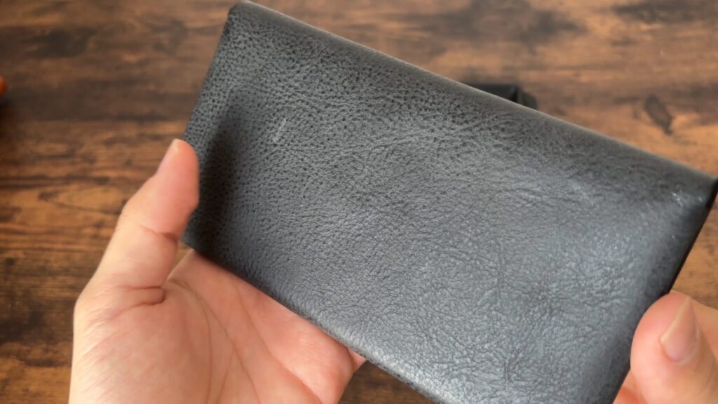 新品時はモヤのかかったような質感ですが、使用とともにこのモヤが徐々に取れ、艶のある見た目へと変化していきます。革を育てる楽しみを手頃な価格で味わえます。