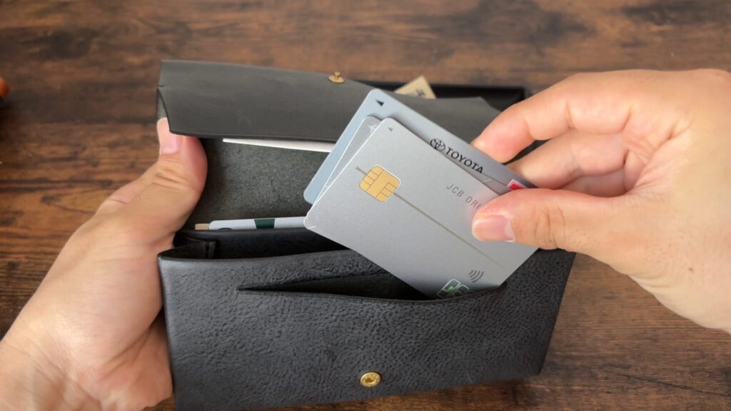 - 左側手前は特に取り出しやすく、頻繁に使うカード向け