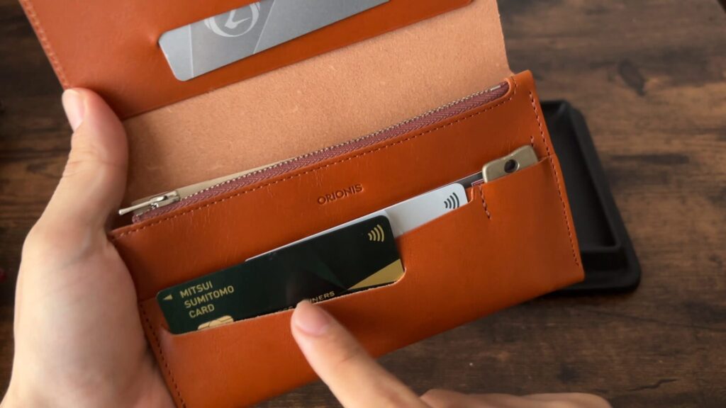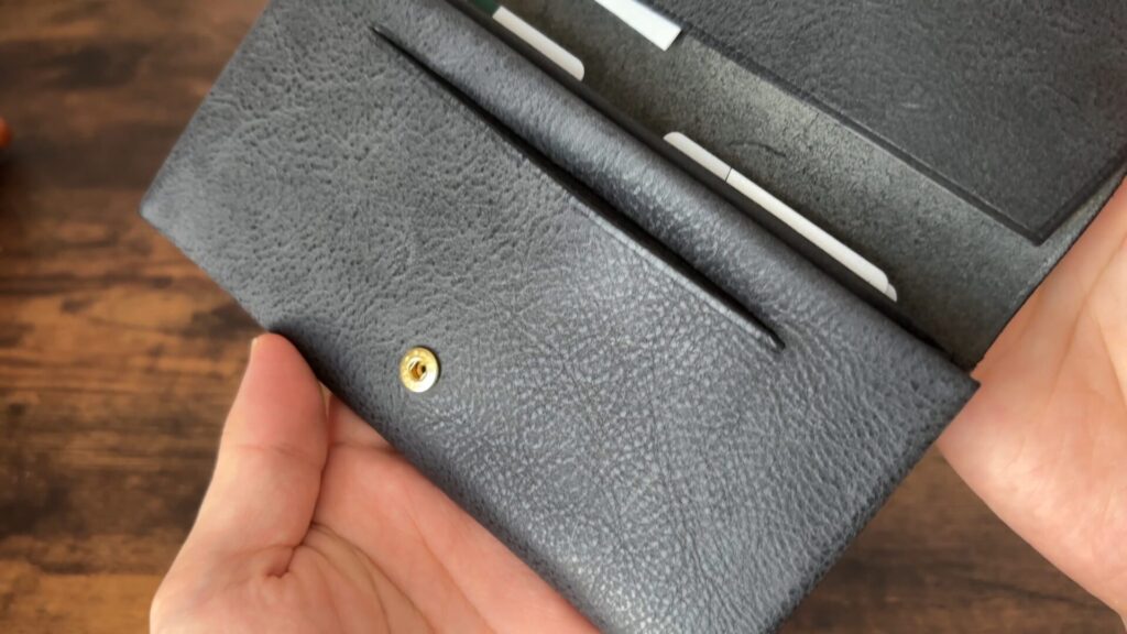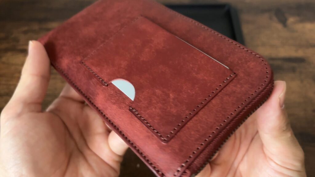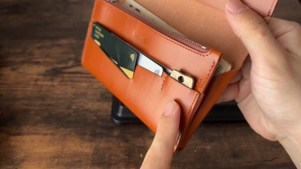 - 財布上部配置でカードと重ならず厚みが出にくい