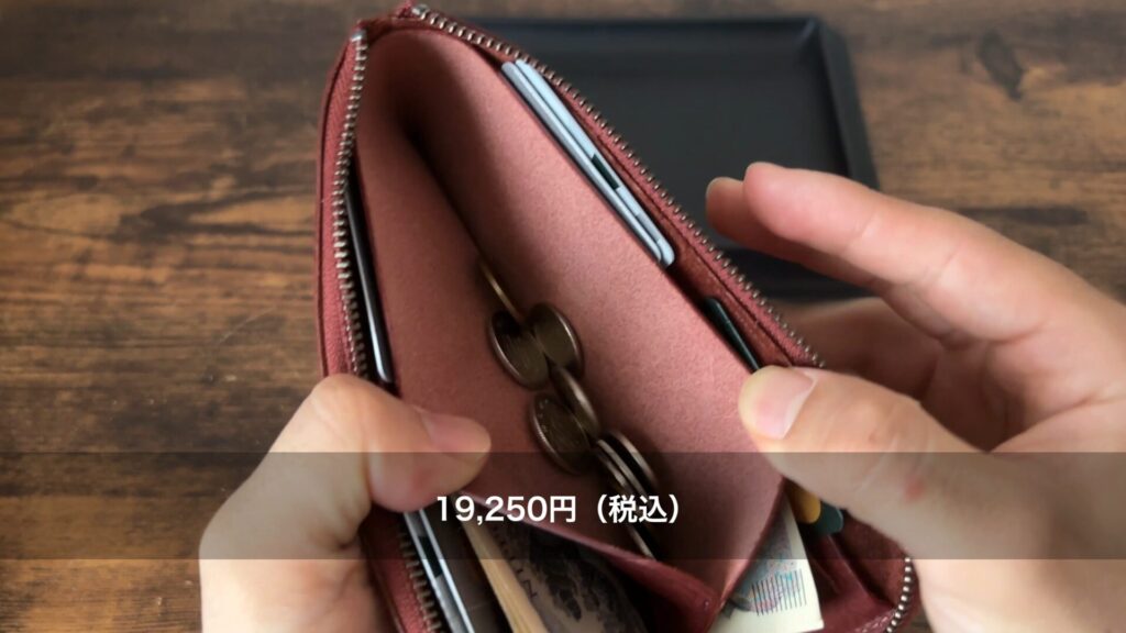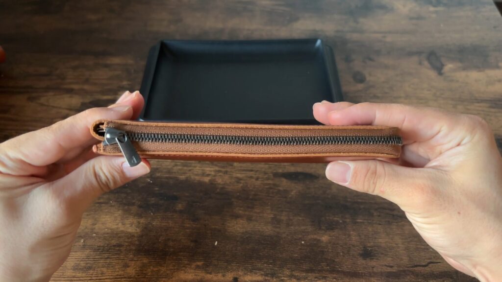 独自構造のマチにより、一万円札でもファスナーの干渉を気にせず収納可能。これが最大の魅力です。