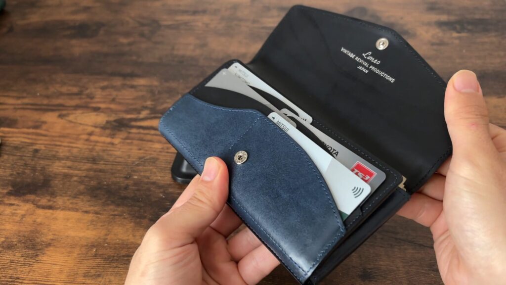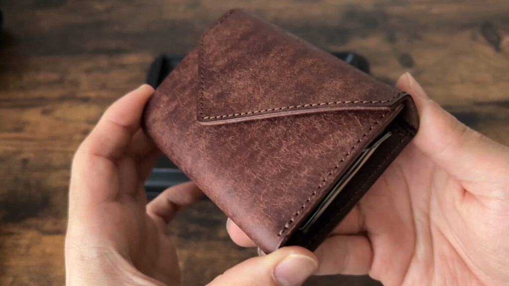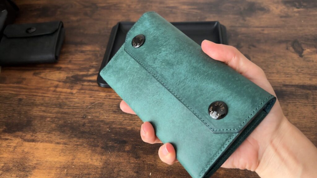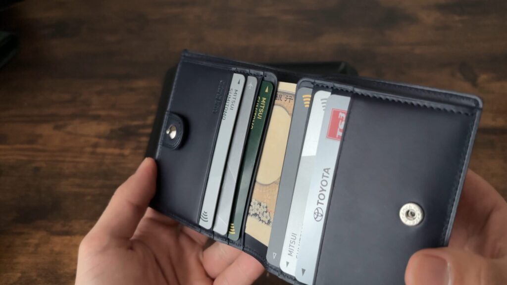 | Sinleathers tasca | 二つ折り | 約8枚 | ○ | くるみボタン・オールレザー |