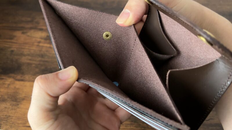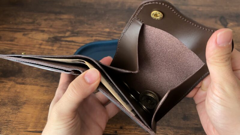 1万円台前半のため、コバの処理や床面の処理がややあらい印象。こういうワイルドな処理がお好きな方にはおすすめですが、コバの磨きや床面の処理などにこだわりがある方は、もう少し金額を出して別の財布を購入された方がいいかと思います。