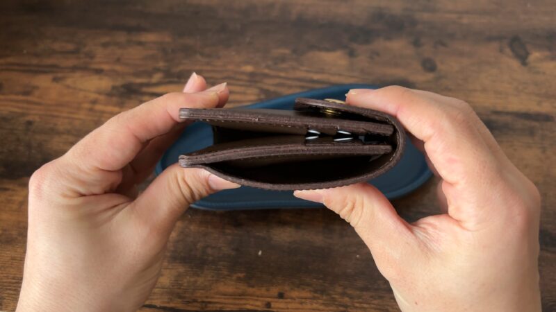 小銭入れは財布を開いてすぐにアクセスすることができます。両側にマチ付きで大きく開き、視認性十分。