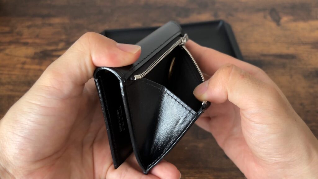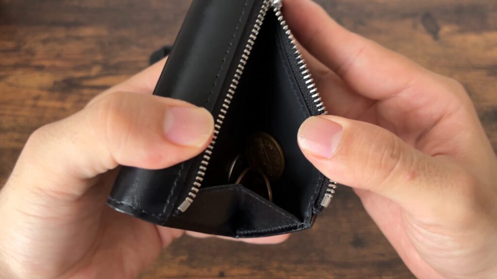 - 外側にカードポケットと小銭入れ、内側に札入れと6枚のカードポケットを配置