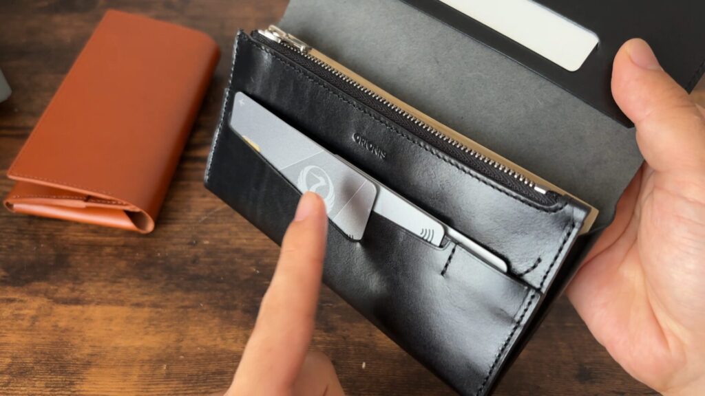 一般的な長財布と比べて圧倒的にコンパクトで、手に取った瞬間にそのスリムさを実感できます。