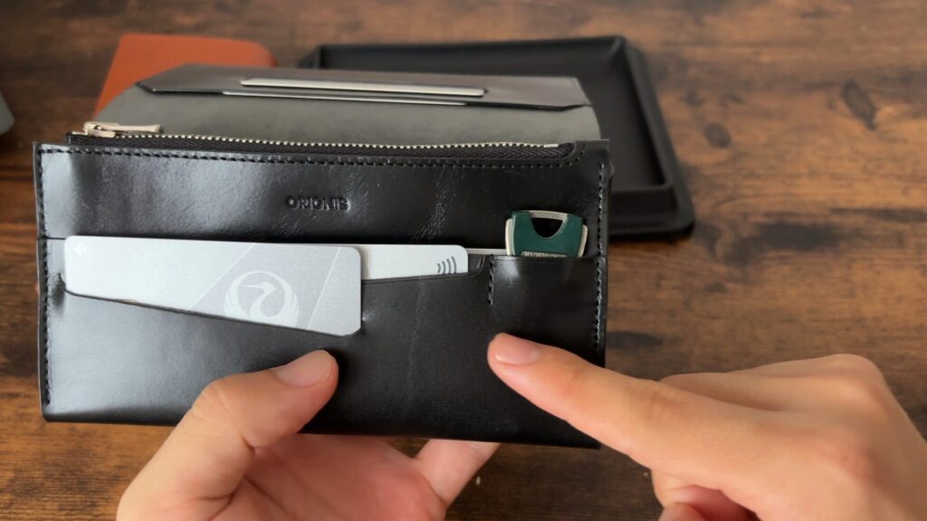 さらに領収書や駐車券などを入れられるフリーポケットと、鍵用ポケットが2箇所付属。