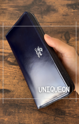 水のような透明感と鋭い輝きを放つ王道のラウンドファスナーウォレット。今回はコードバンを贅沢に使用した一枚革の表版に、国産の高品質な本革を使用したハイエンドモデル、UNIQUEON(ユニコーン)のラウンドファスナーウォレットをご紹介します。
